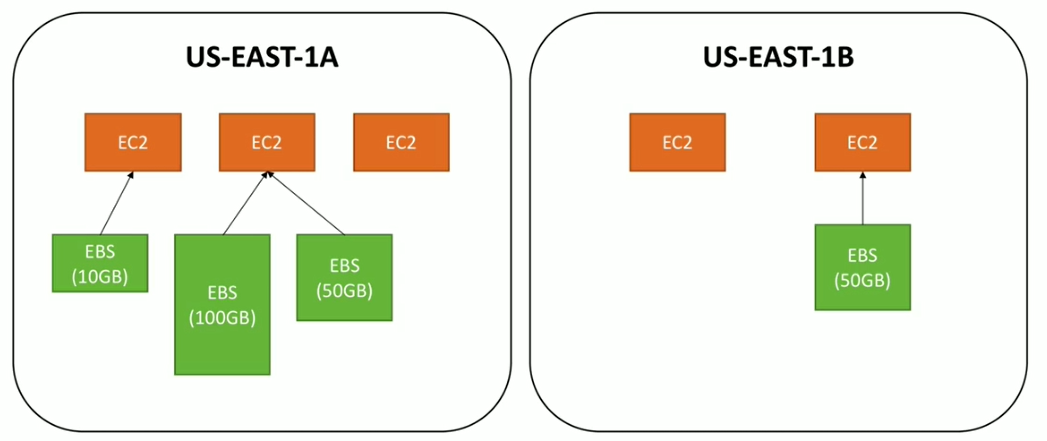 EBS Volume: it's a network drive(i.e not a physical drive)
